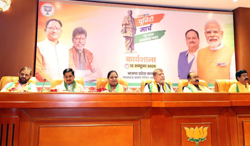 रायपुर। भाजपा प्रदेश कार्यालय कुशाभाऊ ठाकरे परिसर में आज 12 अक्टूबर 2025 दोपहर 12 बजे लौहपुरुष सरदार वल्लभभाई पटेल जी की 150वीं को लेकर कार्यशाला का आयोजन किया गया। कार्यशाला को संबोधित करते हुए भाजपा प्रदेशाध्यक्ष किरण देव ने कहा कि कांग्रेस ने भारत के प्रथम गृह मंत्री सरदार वल्लभ भाई पटेल को भुला दिया है।