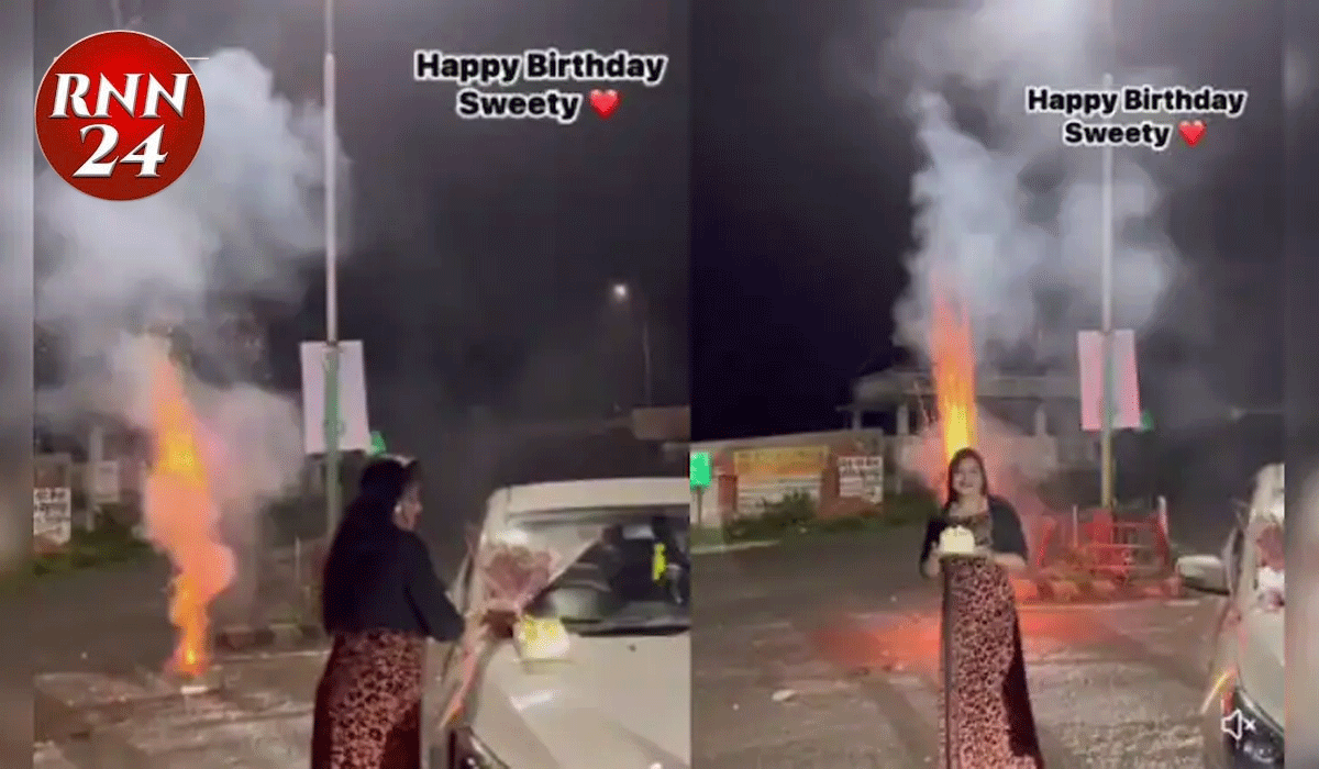 वीडियो में राजेंद्र दास लग्जरी कार सड़क पर खड़ी कर पत्नी का बर्थडे सेलिब्रेट करते नजर आ रहे हैं। बोनट पर केक काटा गया और बीच सड़क पर आतिशबाजी भी की गई। यह वीडियो गुरुवार रात का बताया जा रहा है।