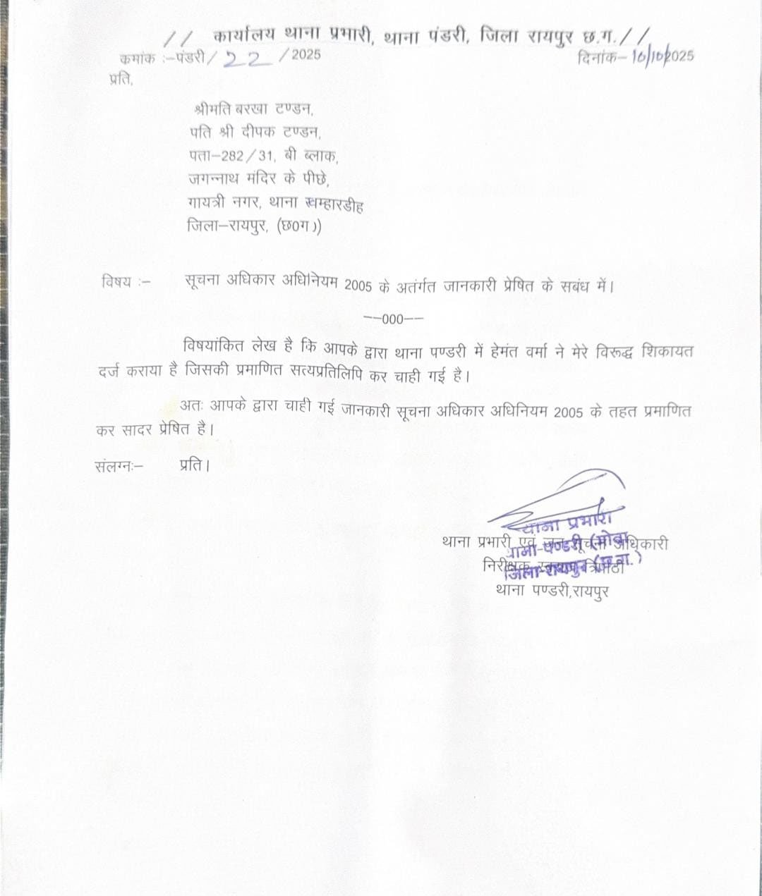 पीड़ित ने आरोप लगाया है कि शिकायत दर्ज होने के बाद भी थाना प्रभारी ने न तो निष्पक्ष जांच की और न ही कोई कार्रवाई की, जिससे मामले को लेकर कई सवाल उठ रहे हैं।