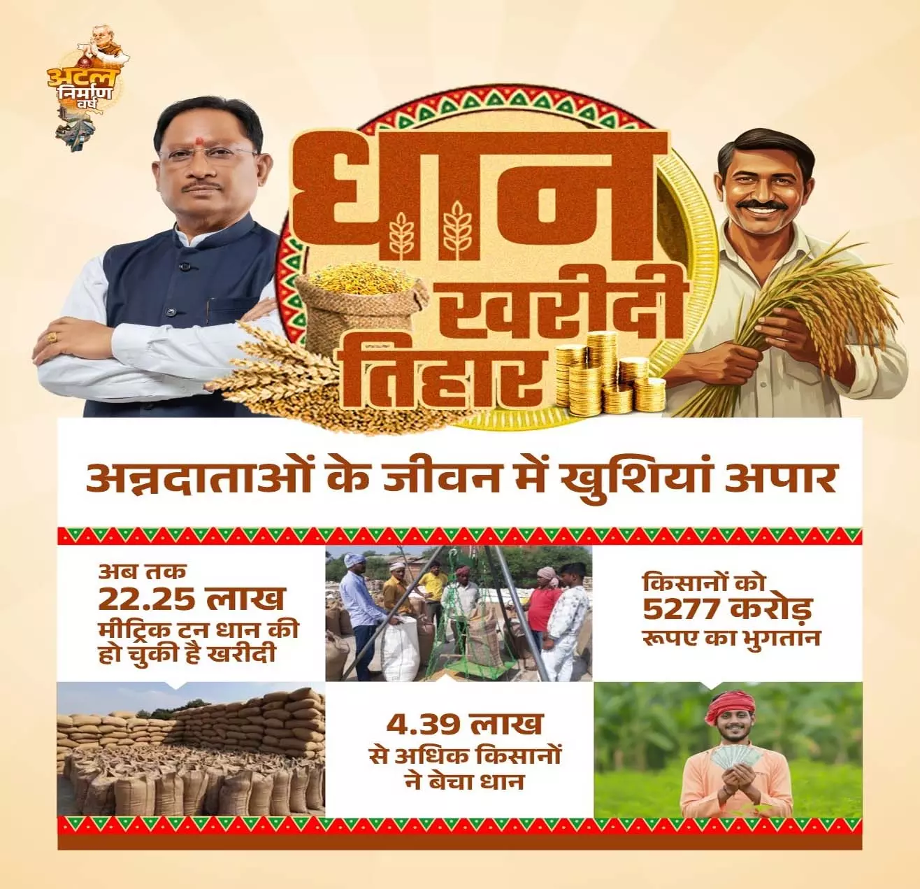 प्रदेशभर में सभी पंजीकृत केंद्रों में खरीदी निरंतर जारी है। अब तक 22.25 लाख मीट्रिक टन धान खरीदा जा चुका है, जो इस अभियान की सफलता को स्पष्ट करता है। उपलब्ध आंकड़ों के अनुसार 4.39 लाख से अधिक किसानों ने अपनी उपज बेची है। पंजीयन, तौल और भुगतान की डिजिटल व्यवस्था ने प्रक्रिया को आसान और पारदर्शी बनाया है।