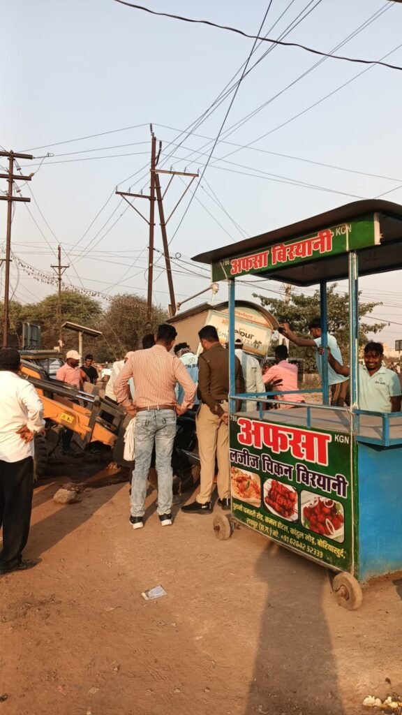 रायपुर- आज रायपुर पुलिस कमिश्नर डॉ. संजीव शुक्ला और रायपुर जिला कलेक्टर डॉ. गौरव कुमार सिंह के आदेशानुसार और नगर पालिक निगम रायपुर के आयुक्त विश्वदीप और यातायात एसपी अजय कुमार के निर्देशानुसार एएसपी यातायात विवेक शुक्ला, नगर निगम अपर आयुक्त नगर निवेश पंकज के. शर्मा, नगर निवेशक आभाष मिश्रा, कार्यपालन अभियंता नगर निवेश आशुतोष सिंह, नगर निगम जोन 6 जोन कमिश्नर हितेन्द्र यादव, जोन 10 जोन कमिश्नर विवेकानंद दुबे सहित सम्बंधित यातायात पुलिस प्रशासन एवं नगर निगम मुख्यालय नगर निवेश विभाग उड़न दस्ता, नगर निगम जोन 6 एवं 10 नगर निवेश विभाग की टीम द्वारा राजधानी शहर नगर निगम रायपुर क्षेत्र अंतर्गत जोन 6, 10 क्षेत्र अंतर्गत संतोषी नगर मुख्य मार्ग, कौशल्या विहार मार्ग, बोरियाखुर्द मार्ग में टीम प्रहरी अभियान अंतर्गत बाजार क्षेत्र में विभिन्न प्रमुख मार्गो को अतिक्रमण से मुक्त करने व्यापक अभियान के अंतर्गत जनहित में जनसुविधा की दृष्टि से सुगम और सुव्यवस्थित यातायात देने सभी दुकानदारों को पुनः एक बार समझाइश दी गयी कि वे सड़क पर कब्जा ना करें, अन्यथा की स्थिति में सड़क पर रखे उनके सामानों की यातायात जाम की समस्या दूर करने जनहित में सख्तीपूर्वक जब्ती कर ली जाएगी, इस स्थिति के निर्मित होने पर सम्बंधित कब्जाधारी दुकानदार स्वतः जिम्मेदार रहेंगे ।