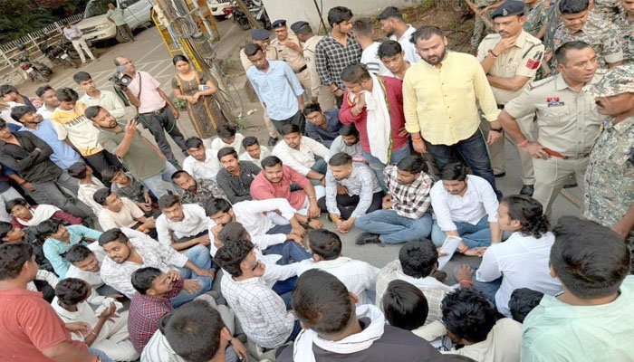 बंगले की ओर बढ़ रहे कार्यकर्ताओं को रोकने के दौरान पुलिस और NSUI कार्यकर्ताओं के बीच धक्का-मुक्की की स्थिति बन गई। इसके बाद कार्यकर्ता वहीं धरने पर बैठ गए और नारेबाजी शुरू कर दी।